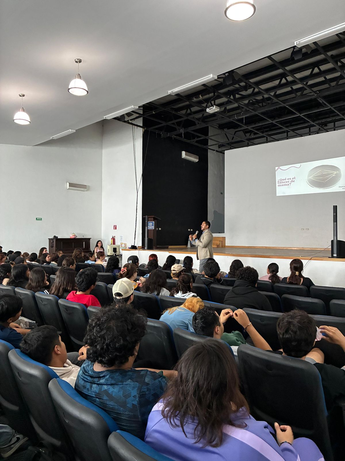 Aproximadamente 150 estudiantes se congregaron en el Auditorio de la Antigua Presidencia Municipal de Chapala para asistir a una conferencia magistral sobre la prevención y detección oportuna de esta enfermedad, impartida por el Dr. Jorge Armando Medina Legarreta, Jefe del Departamento de Salud Pública.