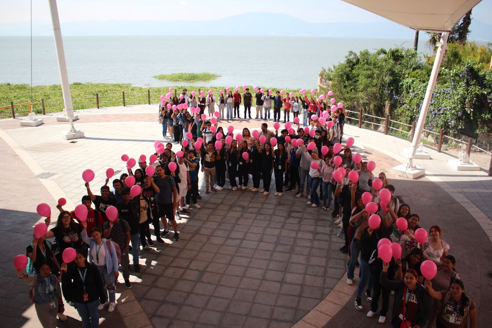 Al finalizar la sesión académica, los asistentes se trasladaron a "La Vela", en el malecón del Lago de Chapala, para realizar una dinámica conmemorativa. En un acto de unidad y sensibilización, los estudiantes formaron un listón humano de color rosa, creando una fotografía simbólica para refrendar el mensaje de la jornada: "¡Tócate para que no te toque!".